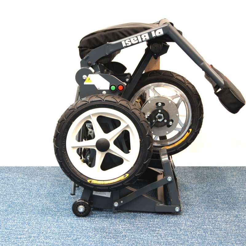 The Di Blasi R30 is a unique and innovative folding pavement scooter, renowned for its patented folding mechanism that collapses into an extremely compact and portable package with minimal effort. It boasts a self-contained folding design that allows it to be reduced to a remarkably small size, often compared to a suitcase on wheels, for effortless transport and storage. Thoughtful features like a simple control system, a comfortable seat, and a practical range offer unparalleled convenience for travel and spontaneous outings. This model is a engineering marvel of portability; its space-saving folding technology is its greatest asset, but its compact size and focus on folding may result in a firmer ride and less stability than standard non-folding pavement models.