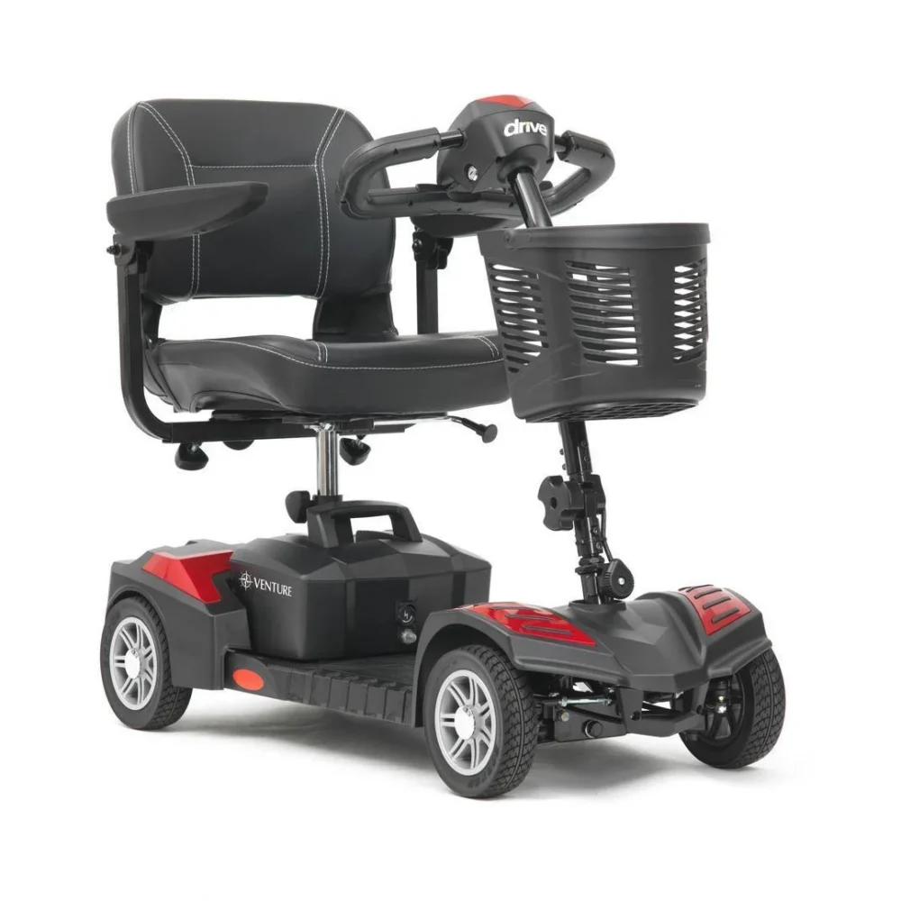 The Drive Medical Venture is a practical and value-focused four-wheel pavement scooter, offering essential features and reliable performance for everyday mobility on paved paths. It boasts a stable four-wheel design and simple controls that make it easy to operate for users of all experience levels. Thoughtful features like a swivel seat, a delta tiller for those with limited hand strength, and a front storage basket offer a straightforward and functional solution. This model is an accessible and dependable entry-level option; its ease of use and competitive pricing are its greatest assets, but it is designed for light to moderate use on smooth surfaces and may lack the power for steep hills.