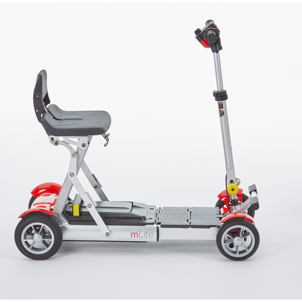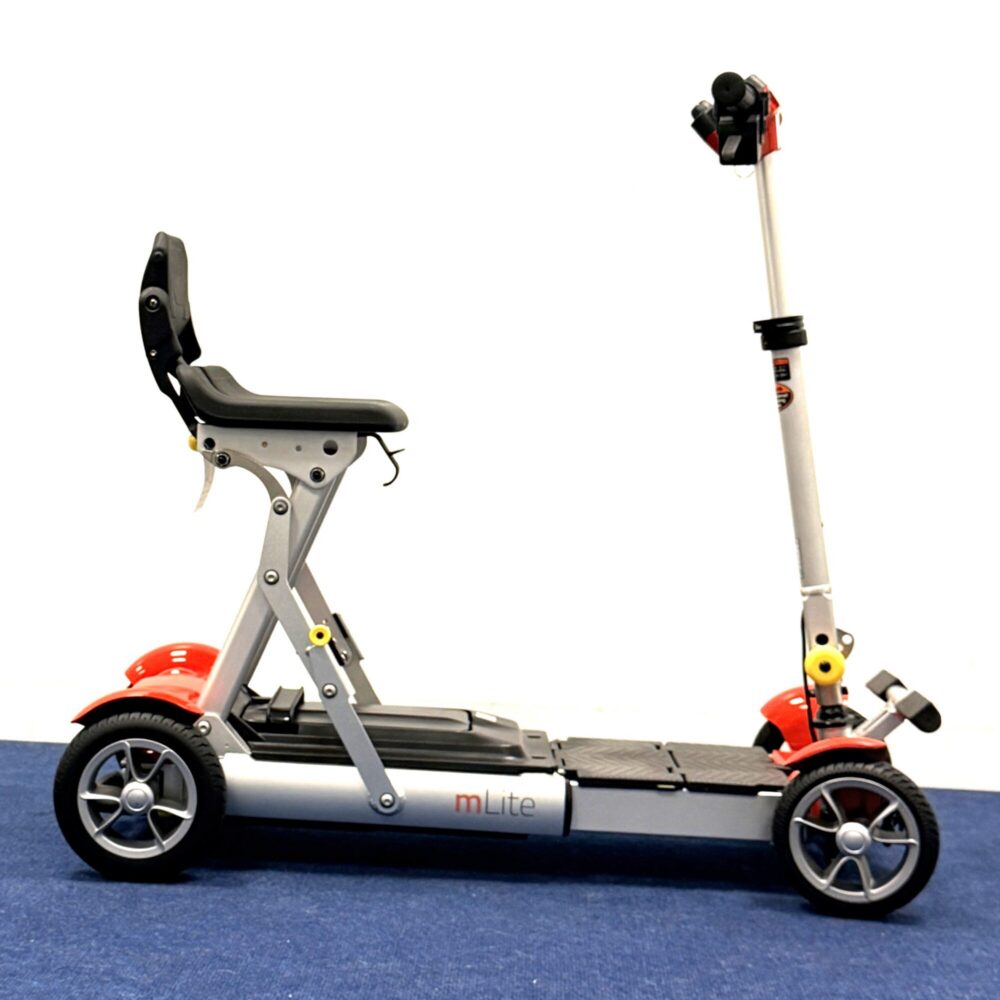 The Motion Healthcare mLite is a premium, ultra-lightweight pavement scooter. It represents the cutting edge of portable mobility engineering. An exceptionally light yet rigid aircraft-grade aluminium frame lifts and transports effortlessly. At the same time, a tool-free separation mechanism, sleek colour options, and ergonomic steering deliver both beauty and function. Furthermore, its advanced materials achieve minimal weight without any sacrifice in structural strength.