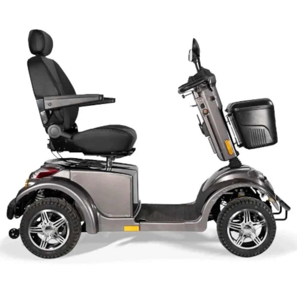 The Scooterpac Ignite is a modern and compact class 3 roadworthy scooter, designed to offer the freedom of road use in a more manageable and stylish package. It boasts a capable motor that handles moderate inclines and provides a stable ride, all while being equipped with essential LED lighting and indicators for safety. Thoughtful features like a comfortable seat, digital dash, and practical storage options make it a practical and user-friendly choice for daily tasks. This model excels as a compact road-legal option; its smaller size makes it more manoeuvrable and easier to store than larger road scooters, but those who need to tackle very steep hills regularly or require a longer range may want to consider its capabilities. Its modern design offers a great compromise for urban users.