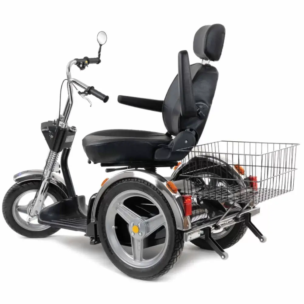 The TGA SuperSport is a high-performance class 3 roadworthy scooter, designed for the active user who demands power, speed, and a dynamic riding experience. It boasts an extremely powerful motor that delivers impressive acceleration and a high top speed, alongside full road-legal lighting for safe travel. Thoughtful features like a sport-style leather seat, sleek dash, and responsive controls create an engaging and confident ride on both road and pavement. This model is built for thrill and performance; its powerful motor and sporty design are its greatest assets, but it is not designed for regular dismantling and requires significant storage space. Those who prioritise a swivelling seat for easier access may want to consider this aspect, as sport models often have fixed seating. Its capabilities are best for users who have a suitable storage solution and transport vehicle.